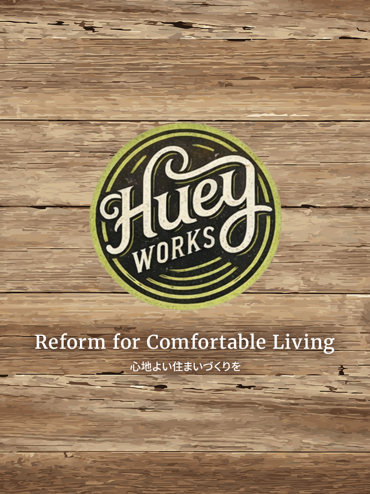 HUEY WORKS(ヒューイワークス)は、八千代市を中心に内装リフォームや鍵・ガラス交換、水回りリフォームなど、住まいに関する工事を行っています。