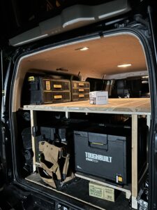 使いやすい荷室を目指して組んでますがやることによって変わってくるのでしょっちゅう組み替え…